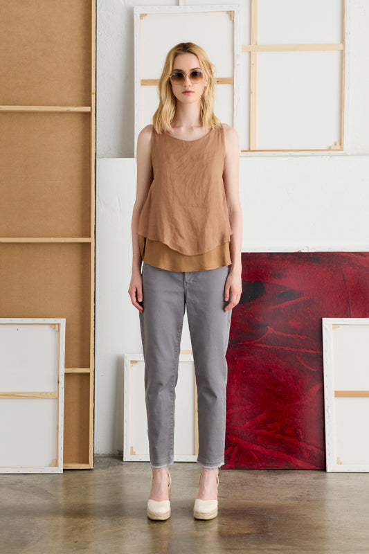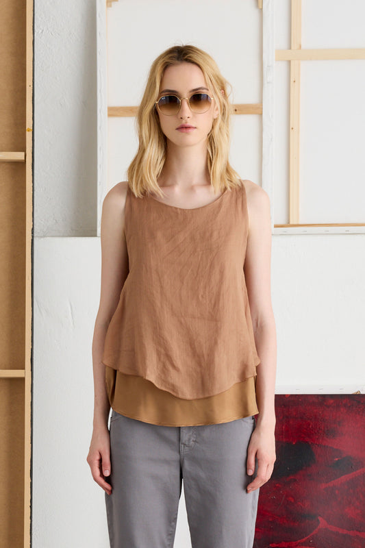 Double Layer Sleeveless Sheer Top Ramie and Cupro