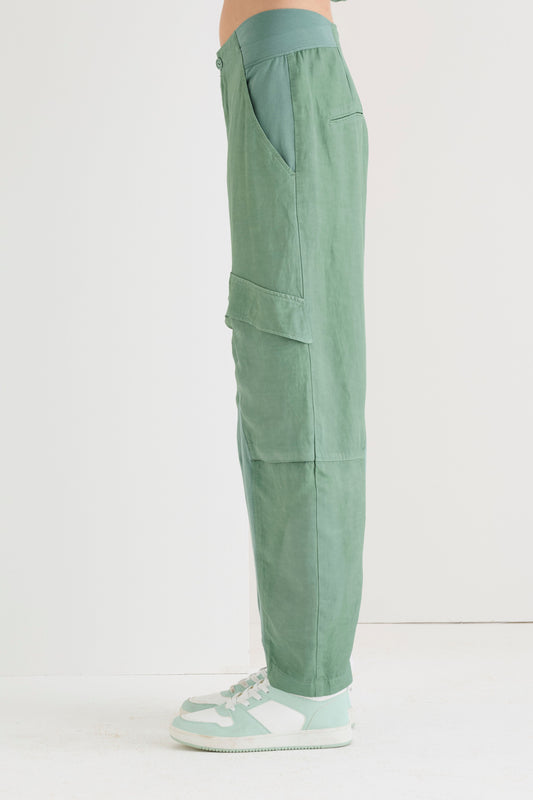 Pantaloni cargo in lino e viscosa 050U 7083