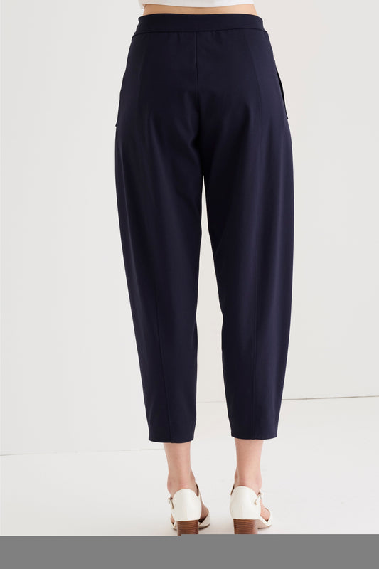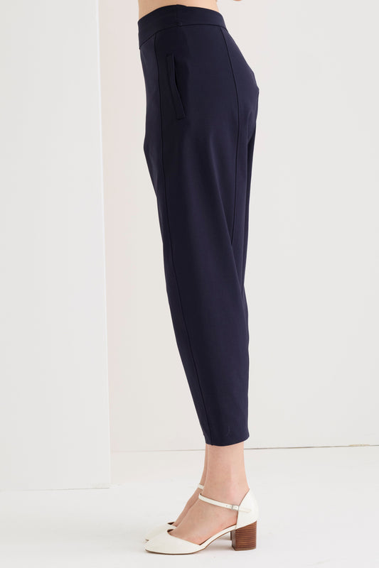 Pantaloni cropped in cotone con due tasche laterali alla francese, bottone frontale e chiusura a zip nascosta. Il design minimale e le tasche a filetto sul retro offrono funzionalità e stile. Un passepartout estivo contemporaneo, perfetto da indossare al lavoro o nel tempo libero.