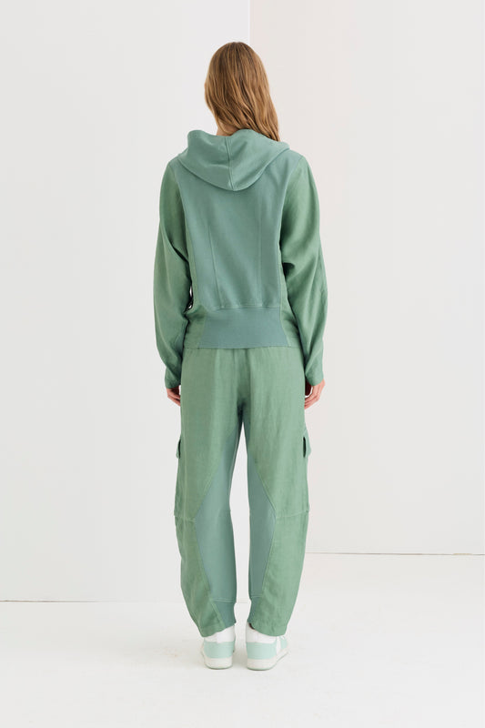 Felpa con cappuccio in viscosa, cotone e lino