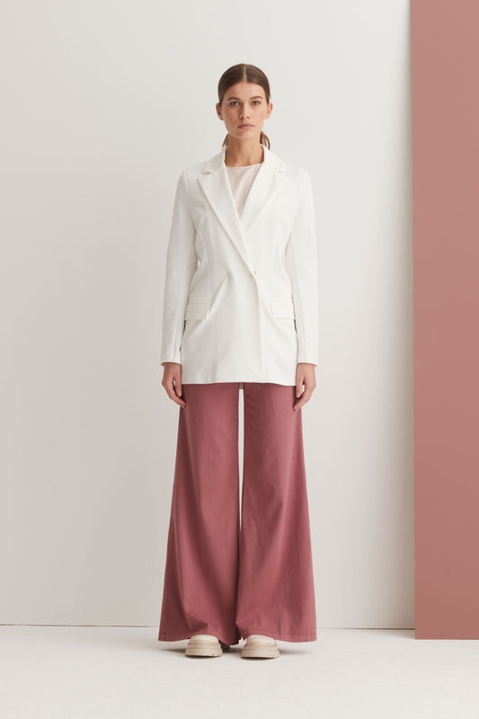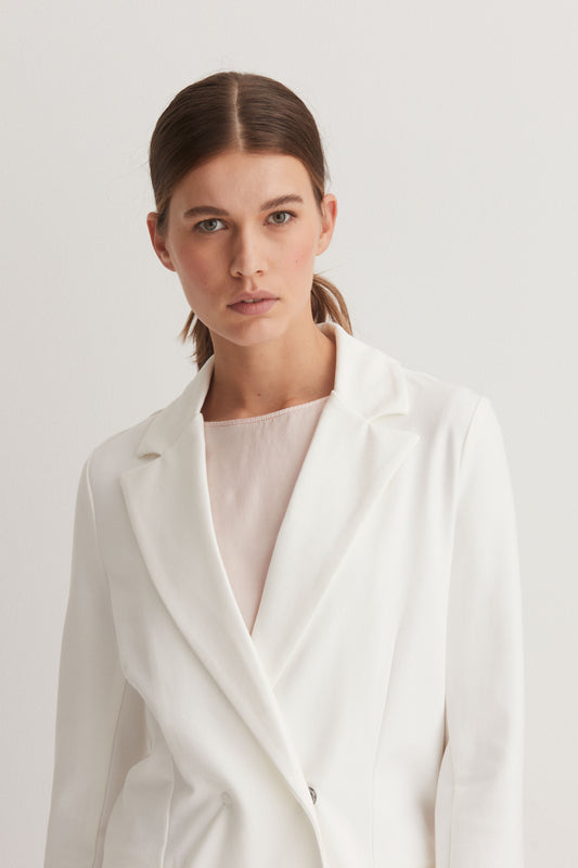 Questo blazer dal gusto contemporaneo è perfetto da indossare tutto il giorno. È realizzato in viscosa e cotone nella tonalità del bianco naturale per adattarsi ai movimenti quotidiani.