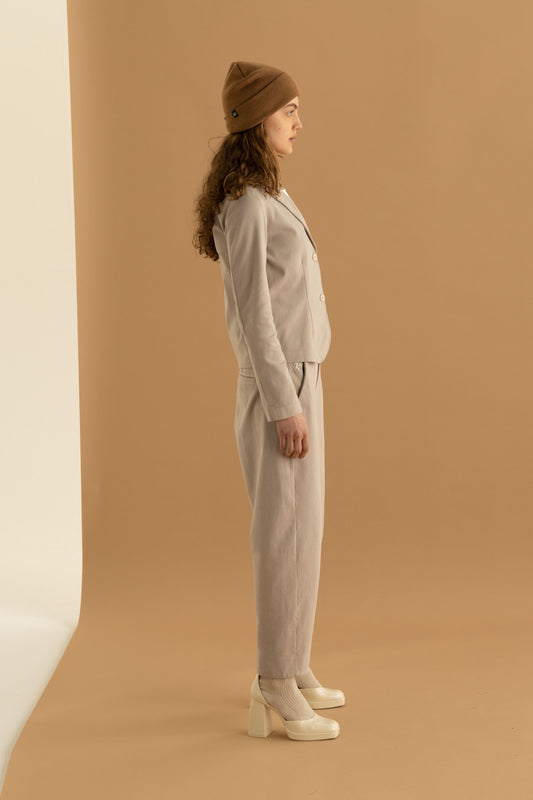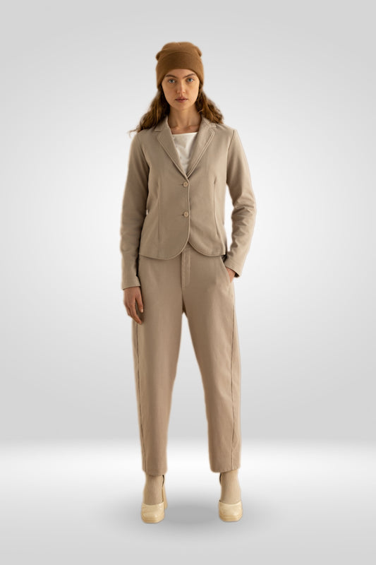Questa giacca è un’ottima opzione per le mezze stagioni. Questo modello chic è realizzato in jersey punto Milano con una silhouette semplice, due bottoni e design cropped