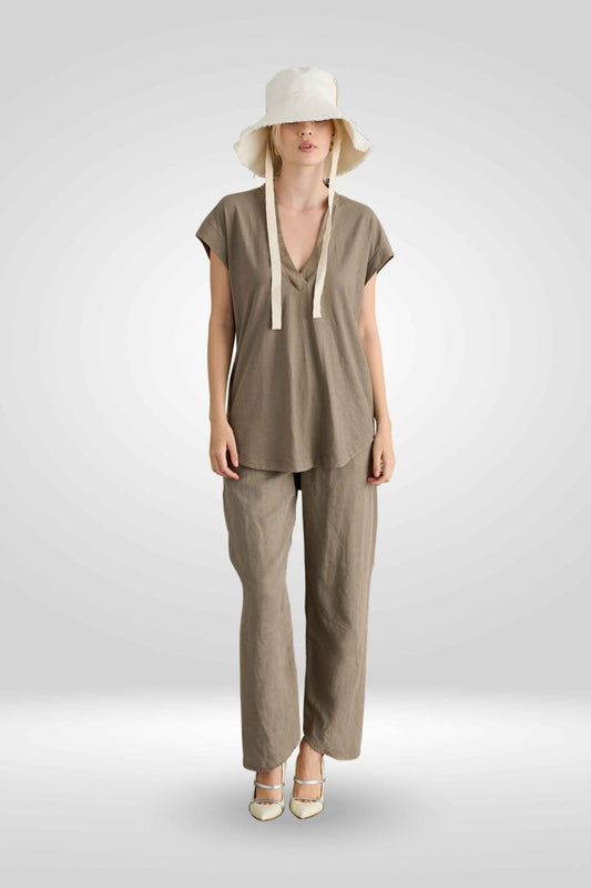 Un classico rivisitato in composizione eco-sostenibile di Lino, Cotone e Lyocell, dalla vestibilità comoda ed eleganza assoluta. Vita regular con baschine laterali e orlo asimmetrico che rende il capo unico. Da sfoggiare con facilità al lavoro o nel tempo libero a seconda dell’occasione.