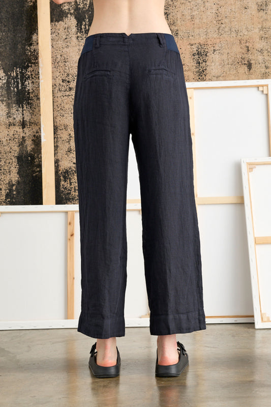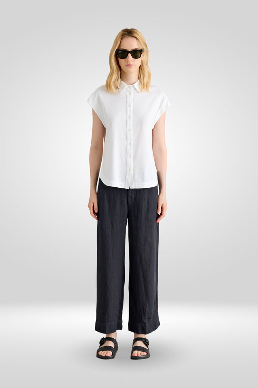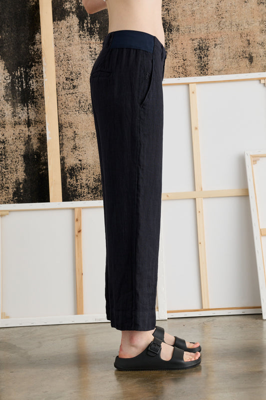 Stile contemporaneo esaltato dalla vita alta e dall'ampia vestibilità a palazzo che ne accentua la struttura netta e lineare. Realizzati in Cotone e Lino traspirante ed ipoallergenico, sono freschi, versatili e di tendenza. Base perfetta per molteplici look da sfoggiare tutta l’estate.