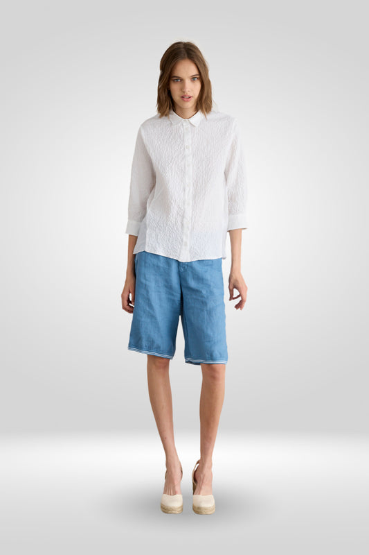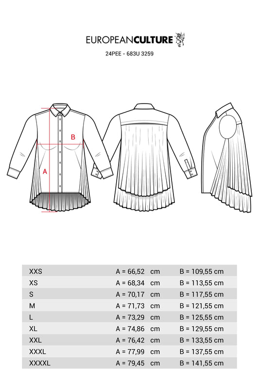 Allure raffinata per la camicia in Cotone e Viscosa con balze posteriori e maniche a ¾. Con gonna in mussola ton sur ton European Culture creerai un look ricercato da cerimonia o evento importante.