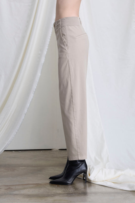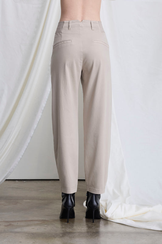 Chinos featuring a balloon silhouette, crafted from a lyocell-blend gabardine. Regular waist with comfort inserts on the sides. Slant pockets and back welt pockets. Front closure with exposed button and hidden zip.