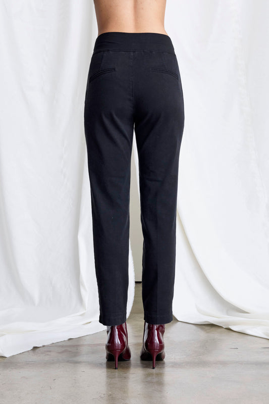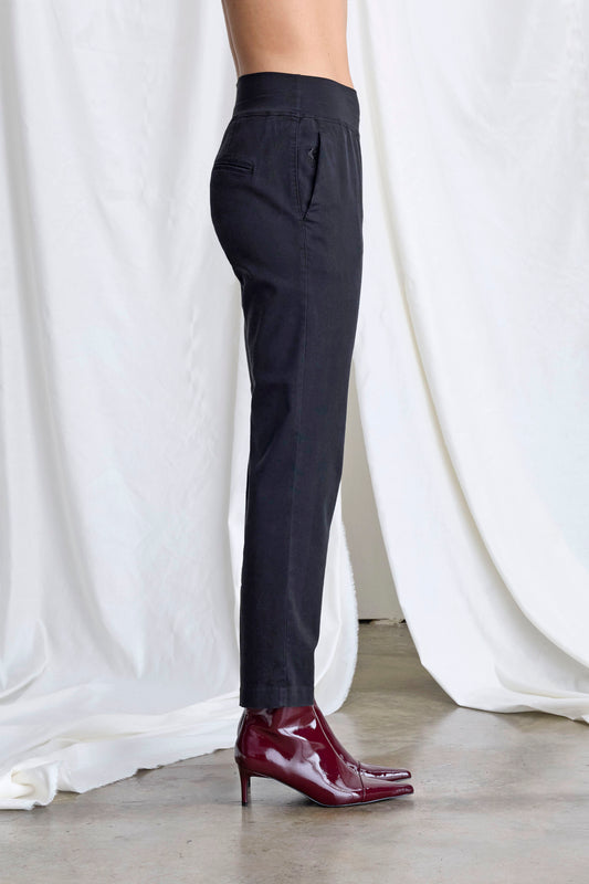 Cigarette trousers made of a gabardine and lyocell blend. Comfortable peplum waistband. French pockets.