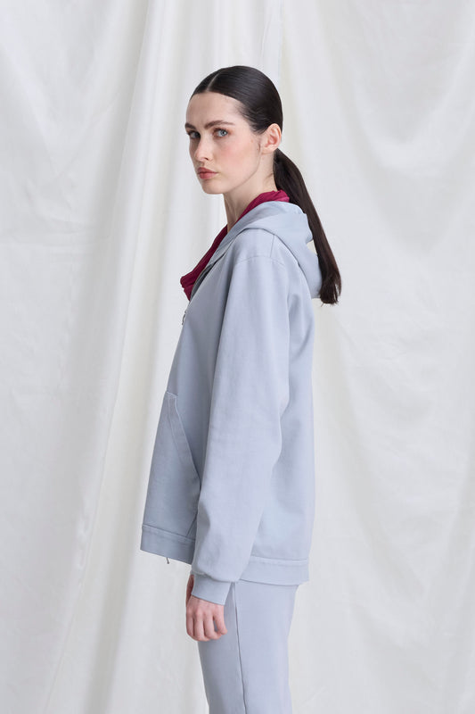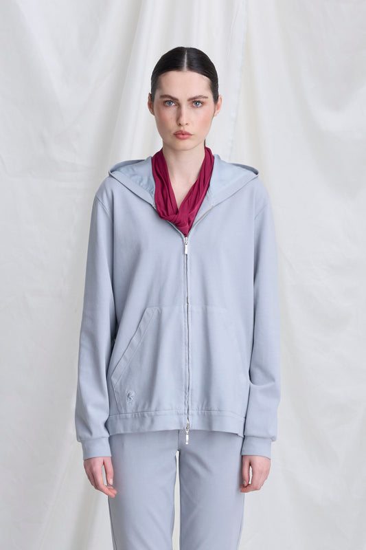 Hoodie with front zip closure. Practical pouch on the front. Comfortable and versatile fit.