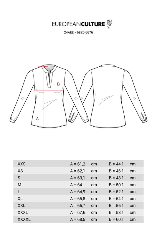 Shirt with mandarin collar and button detail on the bottom of the sleeves, has a soft, flowing line. An elegant and versatile garment, perfect for completing numerous looks